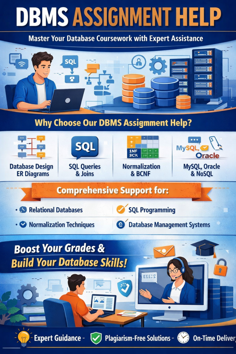 Databases form the backbone of every modern organization, from banks, hospitals, and educational institutions to e-commerce platforms, cloud services, and social media networks. For students pursuing Computer Science, Information Technology, Data Analytics, and Software Engineering, mastering database concepts is not optional, it is a core academic and professional requirement. However, designing efficient databases, writing error-free SQL queries, and applying normalization principles correctly can be challenging. This is where expert DBMS assignment help becomes essential.