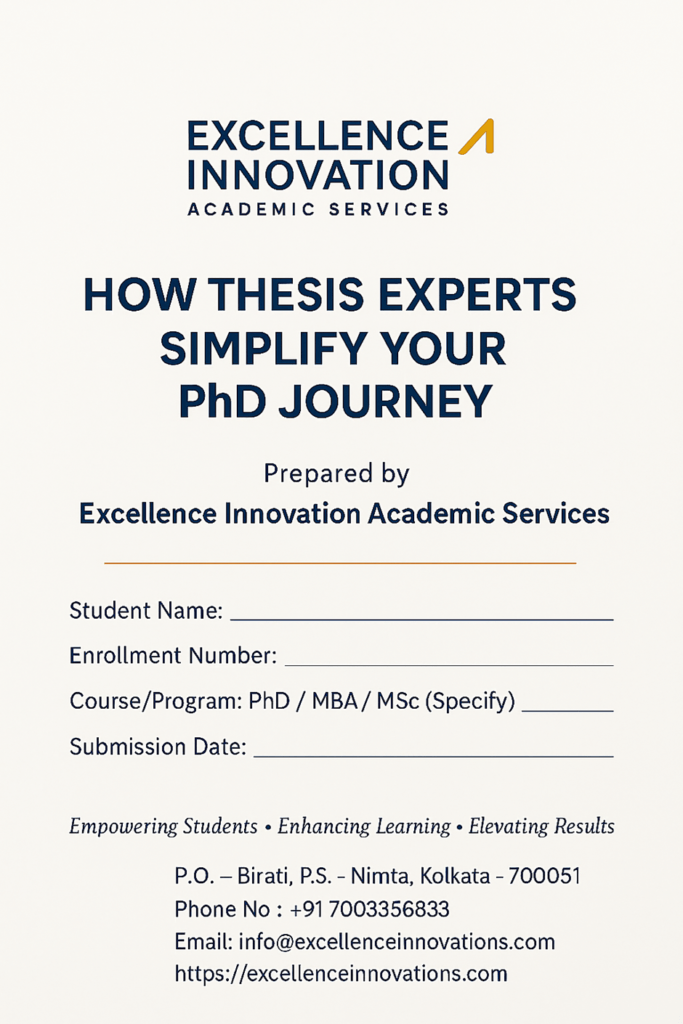 At Excellence Innovation, our team of professional academic consultants and research specialists simplifies every stage of your PhD journey. We understand that completing a thesis isn’t just about writing; it’s about transforming years of hard work into a coherent, well-structured, and original contribution to your field.